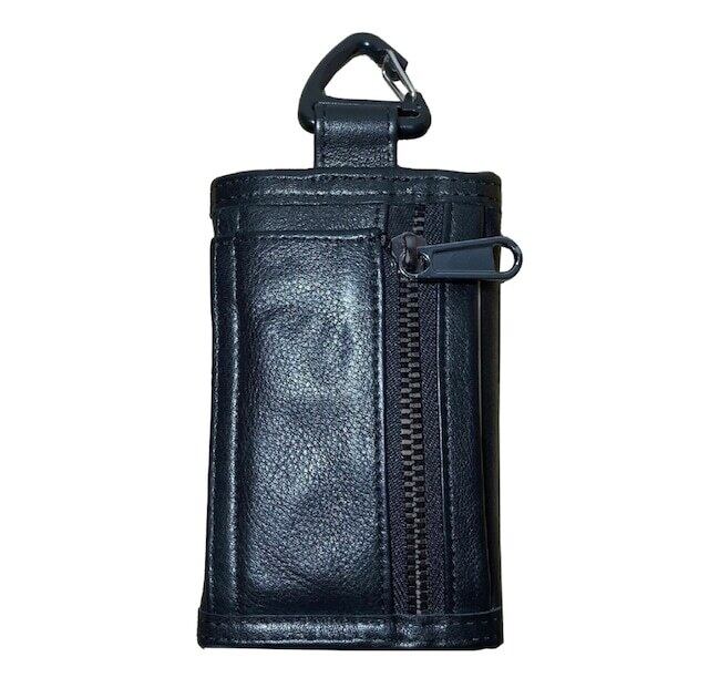 カラビナでベルトにも付けれる三つ折りのコンパクトな財布。素材はレザー。高級感とチープさが共存する面白い財布。