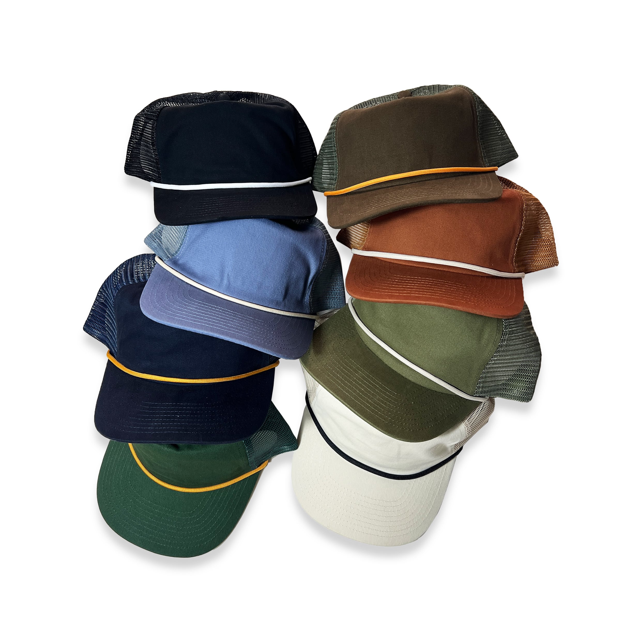 ありそうでない落ち着いた色味のトラッカーズキャップ。