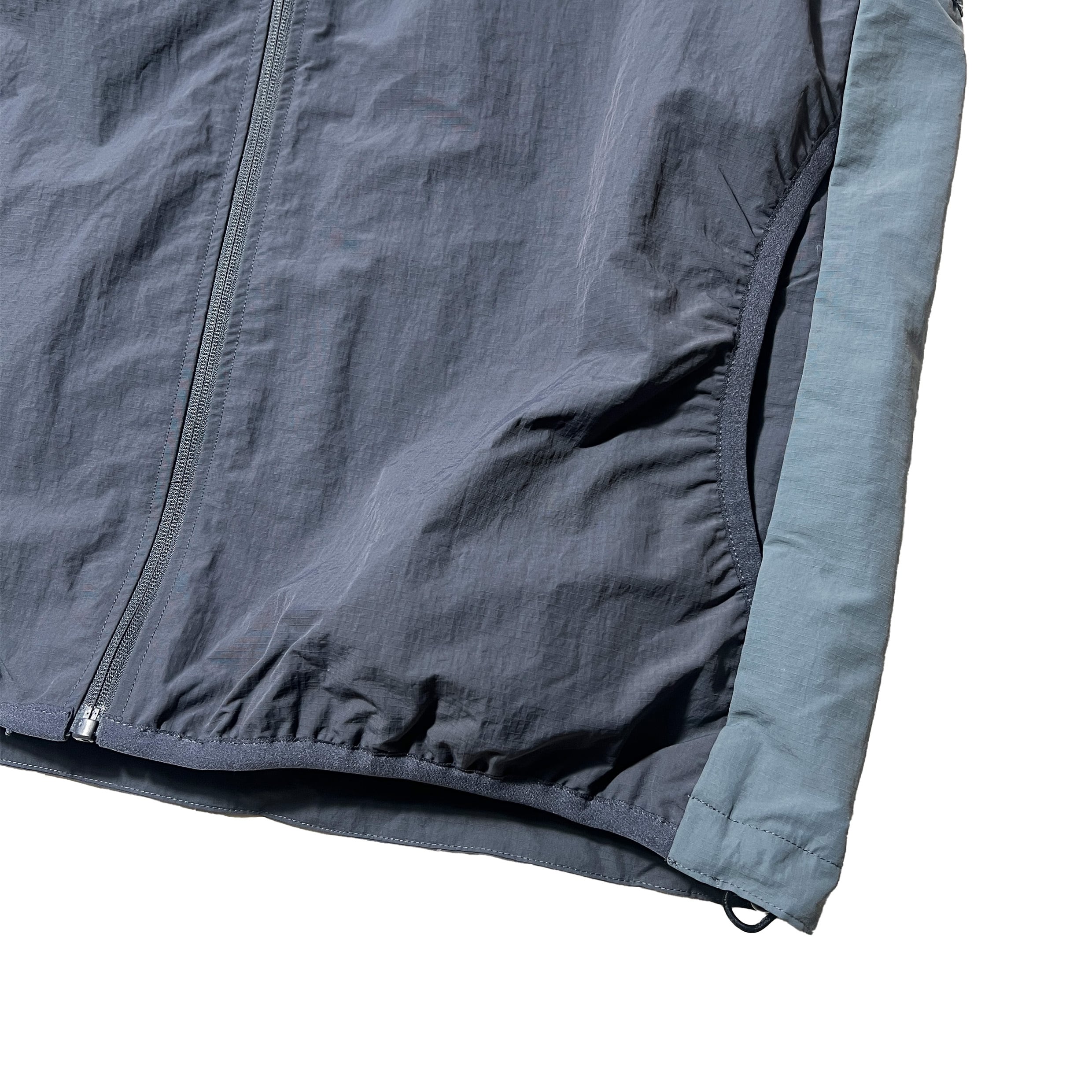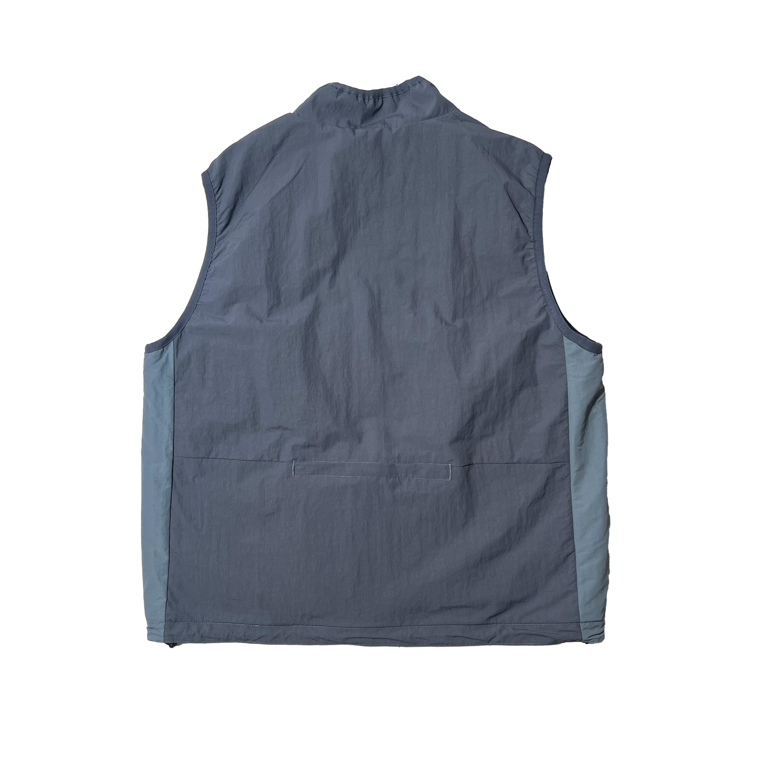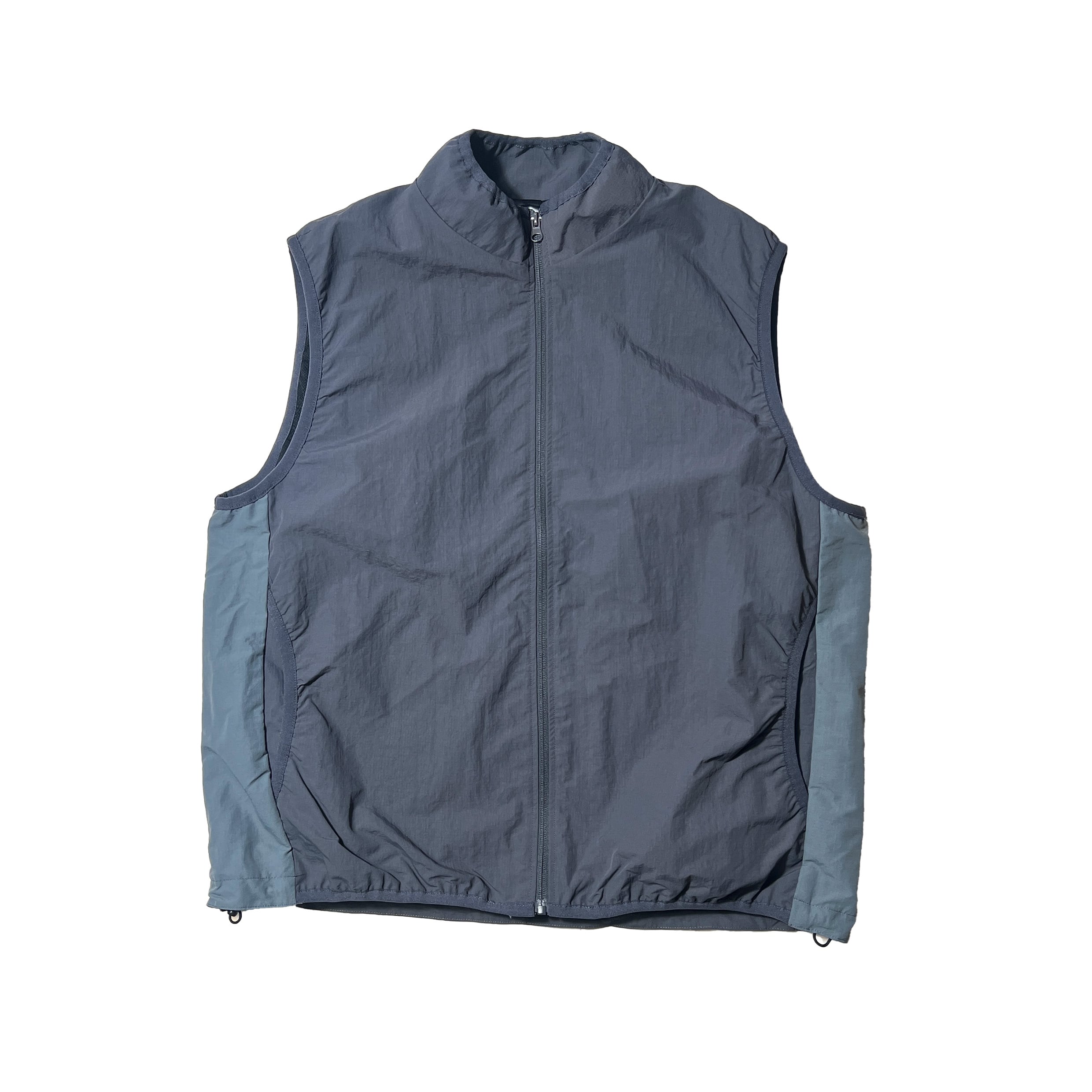 マットでドライな質感のリップストップナイロン生地のベストが側面の切り替えとパイピングが特徴的です。